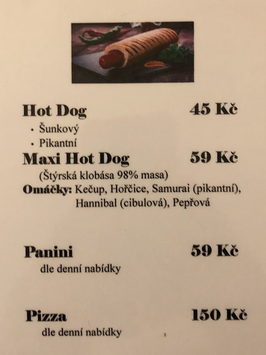 Zámecká Kavárna Menu